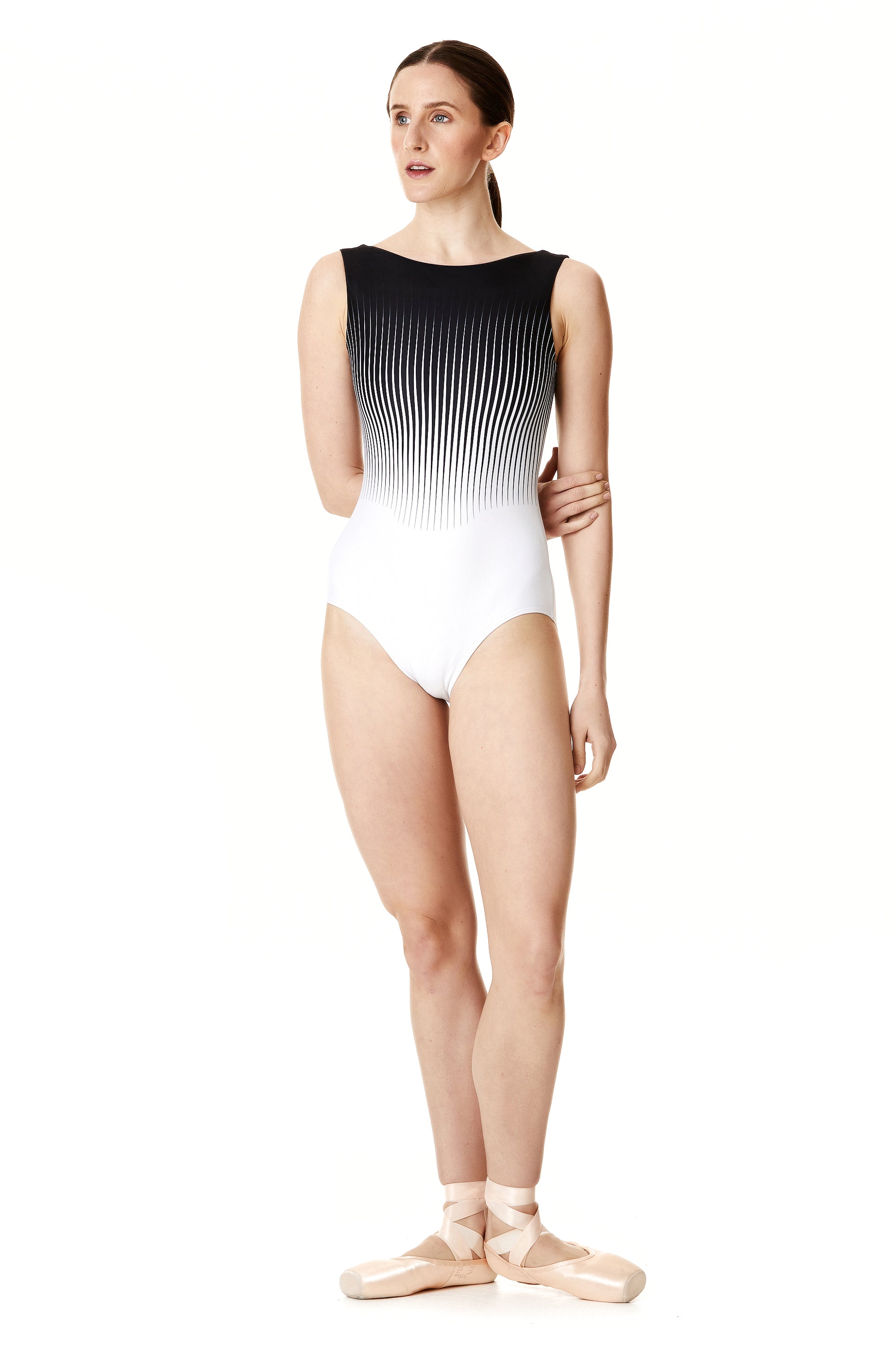 Black to White bottom Ombré. Leotard is fully lined, front and back.
